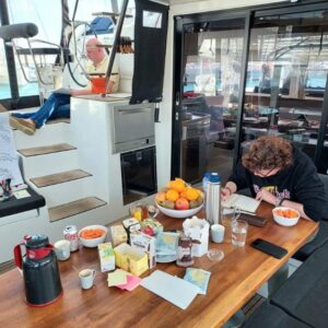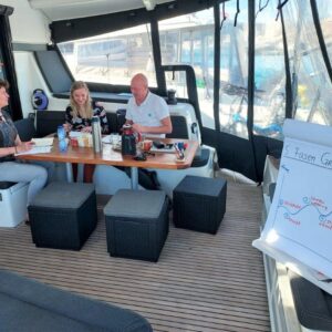 De training vindt exclusief plaats op 2,3,4,5 oktober 2023 van 9.30-17.00u. De trainerslocatie is de luxe catamaran in de jachthaven van Napels, in de Baai van Napels, met genoeg ruimte voor 6 personen. Er zijn 4 breakoutrooms aanwezig waaronder een loungedeck, er is een LCD scherm voor Powerpointpresenties en een flipover. Er zijn 2 toiletten aan boord, een salon voor de lunch en een ruime overdekte cockpit om buiten te zitten. De catamaran is van alle gemakken voorzien zoals een koffiezetapparaat, koelkast, diepvries, magnetron. Bekijk hier meer reviews, foto’s en video’s van oudcursisten aan boord van de catamaran. Dit is je kans om even helemaal los te komen van je dagelijkste rolpatroon, to do-lijstjes en ingesleten patronen en alles vanaf een afstandje te zien.