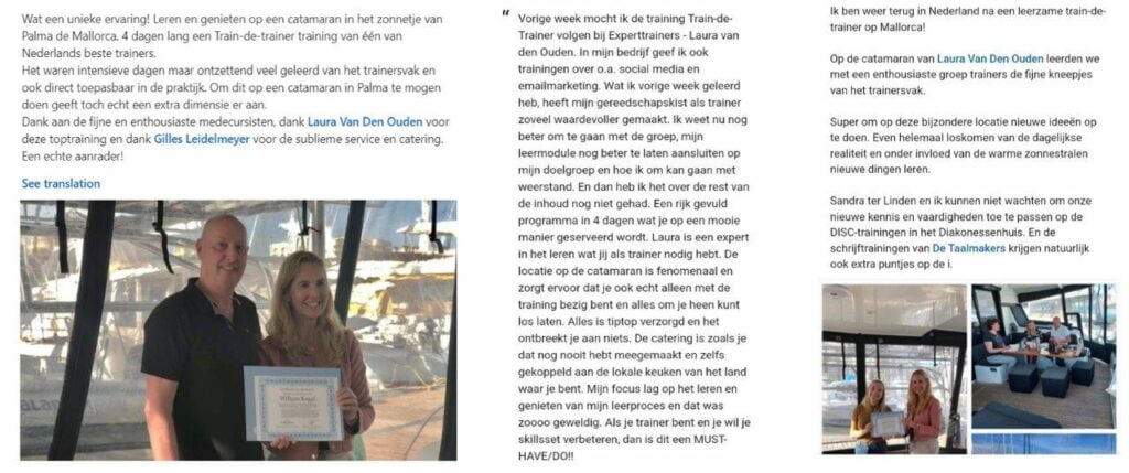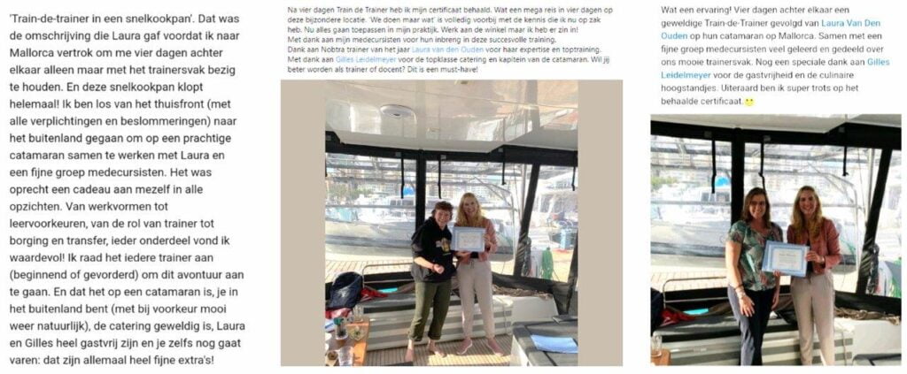 In maart 2023 heeft een groep trainers deze 4-daagse Train de Trainer op de catamaran in Mallorca gevolgd. Lees hieronder hun ervaringen :